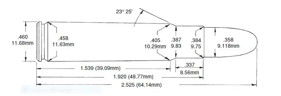 | Bullet diameter | .358 in (9.1 mm) | |||||||||||||||||||