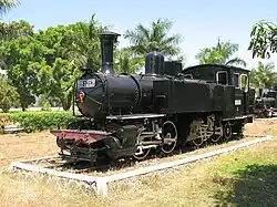 The SS Class 500 was 10.5 m (34 ft 5 in) long with 1,050 mm (3 ft 5 in) diameter wheels and a weight of 44.1 t (48.6 short tons). It had a maximum speed of 50 km/h (31 mph). During Japanese occupation in 1942, these locomotives were renumbered to BB10 and used on Saketi–Bayah railway construction which was used as Japanese war effort for coal transport to the southern coast of West Java as from coal mining in Cikotok.[3] This line was also known as "Death Railway" due to its construction using Japanese PoWs and local residents which were known as romusha or force laborers.[4] One of the BB10 (number 05) was used on Indonesian movie titled "Lebak Membara" (1982) produced by Sabirin Kasdani which tells the story about Indonesian fighters during the Japanese occupation. The last mallets were built for Indonesian Railway (DKA) were 4 units of Type BB1n4v by Nippon Sharyo or known as BB80 class (81–84) came in 1962 for narrow gauge (750 mm) railway line in Aceh. The line itself was built in 1876–1917 by Atjeh Tram which was a part of Staatsspoowegen tram division. The BB80s becoming the only Mallets that were manufactured in Asia. From 4 of them only BB84 is preserved on static display in Banda Aceh.