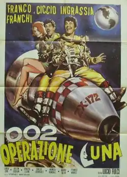 002 operazione Luna is a 1965 science fiction comedy film directed by Lucio Fulci. The film stars Franco and Ciccio, Mónica Randall and Linda Sini.[3] The film's Spanish print released in 1968 was titled Dos cosmonautas a la fuerza (transl. Two Unwilling Cosmonauts) and ran only 76 minutes.[2][1]