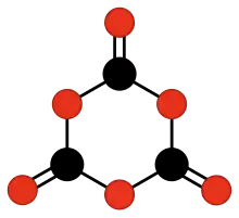 The chemical compound 1,3,5-trioxanetrione, or 1,3,5-trioxacyclohexane-2,4,6-trione is an unstable oxide of carbon with formula C3O6. It can be considered a cyclic trimer of carbon dioxide (CO2) or as a triple ketone of 1,3,5-trioxane (1,3,5-trioxacyclohexane). Trioxanetrione has been synthesized but is exceedingly unstable, with a half-life of approximately 40 min at −40 °C.[1] It decomposes to give carbon dioxide.