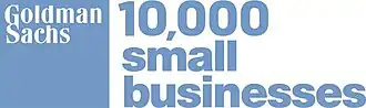 10,000 Small Businesses is a philanthropic initiative launched by Goldman Sachs and the Goldman Sachs Foundation in November 2009 that pledged $500 million in various aid to small businesses in the United States, United Kingdom, and France. The initiative aims to provide 10,000 small businesses with assistance – ranging from business and management education and mentoring to access to capital and business support services. Goldman Sachs' CEO Lloyd Blankfein, Berkshire Hathaway's Warren Buffett and Harvard Business School professor Michael Porter are the chairs of the program's advisory council.[1][2] The program was launched in the face of mounting criticism over Goldman Sachs' large bonus payouts after repaying (with interest) $10 billion in TARP funds it received from the U.S. Treasury.[3] According to the company, the small business initiative had been in development a year before the initial launch, and is modeled after its 10,000 Women Initiative, which has helped educate female entrepreneurs in 43 countries.[4] According to a January 2013 report by Babson College, 63.7% of program participants in the United States reported an increase in revenue and 44.8% added new jobs following graduation.[5]