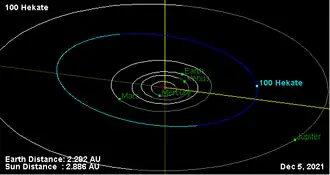 - ^ a b c d "100 Hekate". JPL Small-Body Database. Jet Propulsion Laboratory. SPK-ID: 2000100. Retrieved 12 May 2016.