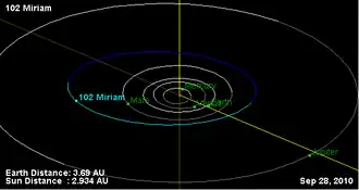- ^ a b c d e f "102 Miriam". JPL Small-Body Database. NASA/Jet Propulsion Laboratory. Retrieved May 12, 2016.