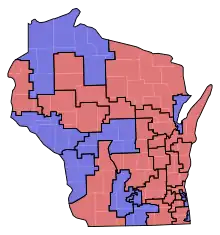 - ^ Republican Glenn Grothman (20th district) resigned before the start of the session due to his election to the U.S. House of Representatives.