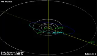 - ^ a b Yeomans, Donald K., "105 Artemis", JPL Small-Body Database Browser, NASA Jet Propulsion Laboratory, retrieved 12 May 2016.