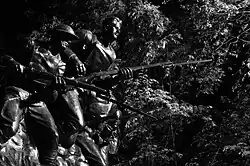 The 107th Infantry Memorial is an outdoor bronze sculpture and memorial located at the intersection of East 67th Street and Fifth Avenue in Central Park, in Manhattan, New York, United States, which honors members of the 107th Infantry who died during World War I. Created by the sculptor Karl Morningstar Illava (1896–1954), who "drew from his own experience serving as a sergeant with the 107th," according to the New York City Department of Parks & Recreation, the sculpture cost an estimated $60,000 at the time of its construction, depicts the actions of seven World War I-era soldiers, and rests on a 25-foot-wide stepped granite base designed by architects Rogers & Haneman.[1]