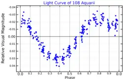 ![]() The visual band light curve of 108 Aquarii, showing the variation over the star's 3.7352 day rotation period. Adapted from Adelman (1999)[1] | |