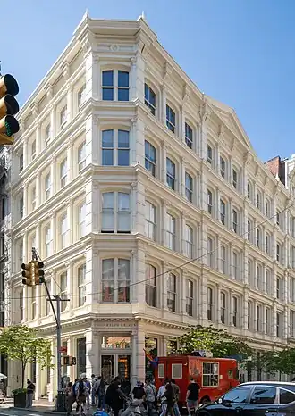 The building, originally a store, has been described as one of the most striking gems of the 19th century cast iron architecture in the world. Completely restored in 1993 by architecture firm Kapell & Kostow, it was awarded the Landmark Certificate of Merit by the New York City Landmarks Preservation Commission in 1994.[2] It is located within the SoHo - Cast Iron Historic District.[3]