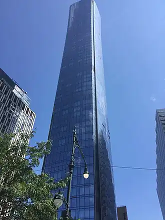 According to Winston C. Fisher, of Fisher Brothers, the building has 156 luxury condominiums.[1] The tower stands 792 feet (241.4 m) to its pinnacle and has 2,100 square feet (195 sqm) of retail space on the ground floor.[2] The building is the third tallest structure in the local area, after 30 Park Place and 56 Leonard Street, matching the height of the Woolworth Building.[3] A 10,600 square-foot (985 sqm) plaza sits adjacent to the tower.