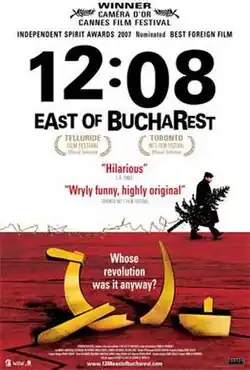 12:08 East of Bucharest (Romanian: A fost sau n-a fost?; lit. 'Was it or was it not?') is a 2006 Romanian film directed by Corneliu Porumboiu, released in 2006 and winner of the Caméra d'Or Prize (for best first film) at the Cannes Film Festival.[3] It was also released in the United States under the abridged titles East of Bucharest and 12:08 Bucharest. The film is set in a small Romanian town far away from the capital city of Bucharest, and centers on a group of characters who revisit the Romanian Revolution of 1989 which brought an end to the communist regime.