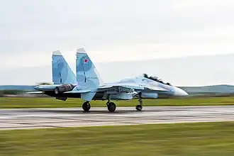 On 1 November 2015, the regiment was reorganized as the 120th Separate Fighter Aviation Regiment of the 11th Air and Air Defense Forces Army,[8] with the Su-25s returning to the reformed 266th Assault Aviation Regiment.[23] By 2017 the MiG-29s of the regiment had been retired and replaced by the Su-30SM,[4] of which the regiment fielded 24 aircraft according to open-source data.[1] On 8 November 2018, the Guards title of the regiment was restored by official decree, and it became the 120th Separate Guards Fighter Aviation Regiment.[24]