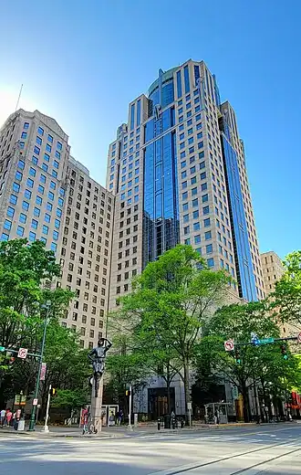 121 West Trade (formerly known as the Interstate Tower)[3] is an office high rise located at the Trade and Tryon, in Charlotte Center City, North Carolina, United States. The post modern building was designed by Kohn Pedersen Fox Associates and was completed in 1991. It also has 330,000 feet (101,000 m) of Class A office space.[4][5]