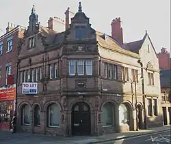 The building was designed by the local architect John Douglas for Prudential Assurance, and constructed in 1902. It has since been used by the Lombard Bank and later as a shop.[1] In the late 2000s it was a beauty salon and in 2009 planning permission was given by Cheshire West and Chester Borough Council for it to be converted into a café and offices.[2]