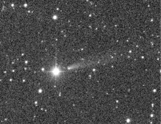 125P/Spacewatch is a periodic Jupiter-family comet. It was discovered on September 8, 1991, by Tom Gehrels using the 0.91 m Spacewatch telescope at the Kitt Peak National Observatory.[4] It was the first comet discovered with the use of a CCD[5] and also the faintest comet upon discovery up to that point.[4] It has a diameter of 1.6 km.[6]