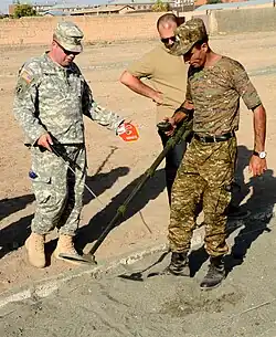 In July 2009, the Defense Minister of Armenia, Seyran Ohanyan, announced that Armenia would send a force from the brigade to participate with the International Security Assistance Force (ISAF) in the War in Afghanistan by the end of the year. He did not mention how large the force would be but did note that it probably would include munitions experts and communications officers. A MOD spokesmen also stated that the force would include medical specialists and translators as well. Ohanyan added that Armenian officers who served in the Soviet military during the Soviet–Afghan War also expressed the desire to return there as members of the new force.[22] In November 2009, a NATO official affirmed that an Armenian contingent numbering 30 troops will join the ISAF sometime in early 2010.[23] That number was revised to 40 in early December, when the Armenian parliament overwhelmingly voted in approval of the contingent's deployment. The servicemen arrived in Afghanistan in February 2010, where they carried out a mission jointly with the German Bundeswehr, being tasked to defend the regional airport in Kunduz.[24] They also served in Kabul and Mazar-e-Sharif. There were 126 servicemen in Afghanistan in 2012.[25]