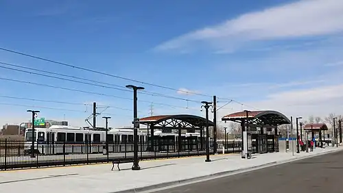 13th Avenue station is a Regional Transportation District (RTD) light rail station on the R Line in Aurora, Colorado. The station is located alongside Interstate 225, a few blocks west of intersection of 13th Avenue and Sable Boulevard. It has a 262-stall park-and-ride lot and is planned to be the center of a transit-oriented development.[3][4]