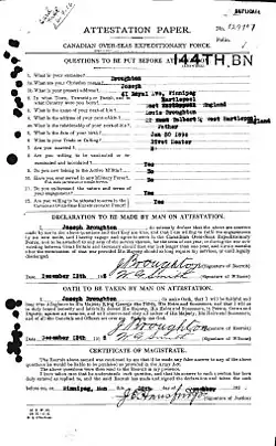 The 144th Battalion (Winnipeg Rifles), CEF was a unit in the Canadian Expeditionary Force during the First World War. Based in Winnipeg, Manitoba, the unit began recruiting in late 1915 in that city. After sailing to England in September 1916, the battalion was absorbed into the 18th Reserve Battalion on January 12, 1917. The 144th (Winnipeg Rifles) Battalion, CEF had one Officer Commanding: Lieut-Col. A. W. Morley.[1]