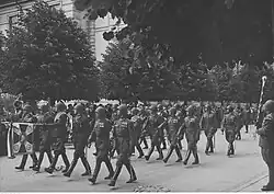 At the end of August, the division command reached operational readiness. In September, the single-battery 9th cavalry division was transported by train to Volhynia and incorporated into the structures of the 9th Cavalry Brigade. Major fighting did not occur until the drive to Korosten. During this period, the artillery supported cavalry regiments fighting on the Słucza River and repelling Soviet counterattacks.[4] On 27 September, the 1/9th cavalry division distinguished itself in the battle for Roháczów, and on 1–2 October, near Ostróżko. The division ended its combat tour in the Korosten region.[5] After the end of hostilities, the 9th cavalry division was quartered in the Przeworsk region. In May 1921, it was transported by rail to Białystok and deployed in the barracks of the 4th Mariampolsky Hussar Regiment at 100 Bema Street.[6] A month later, at the request of Colonel Gustaw Orlicz-Dreszer, it was renamed the 8th cavalry division.