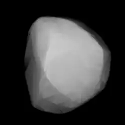 150 Nuwa is a large main-belt asteroid with an orbital period of 5.15 years. It was discovered by Canadian-American astronomer James Craig Watson on 18 October 1875,[6] and named after Nüwa, the Chinese creator goddess. This object is a candidate member of the Hecuba group of asteroids that orbit near the 2:1 mean-motion resonance with Jupiter.[7] Based upon the spectrum it is classified as a C-type asteroid,[8] which indicates that it is probably composed of primitive carbonaceous chondritic material and the surface is exceedingly dark.