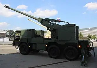 EVA is a Slovak-made self-propelled howitzer, developed by Konstrukta Defence and publicly revealed in 2015. The EVA is based on a Tatra 815 6x6 truck, but the system can be also mounted on a 8x8 truck chassis. It is armed with a 155 mm / L52 howitzer and has a maximum firing range of 41 kilometres (25 mi) with ERFB-BB ammunition.[3][4]