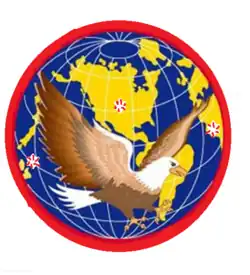 - ^ Approved 16 July 1952. Description: On a terrestrial sphere, light blue, with land markings yellow, longitude and latitude lines white, an American Bald Eagle flying, in natural colors, on the sphere three eight-pointed stars white, shaded red, all within a piping red, and border dark blue.