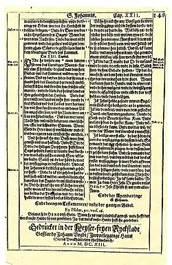 - ^ title: "Biblia Dat ys: De gantze hillige Schrifft, Sassisch D. Mart. Luth. Uppet nye mit flyte dörchgeseen [...]"