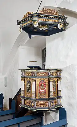 - Johan Friis and Karen Krabbe presents a new pulpit to Otterup Church.