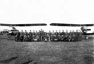 ![]() Pilots and Dayton-Wright DH-4 planes of the 163d Aero Squadron (Day Bombardment), Ourches Aerodrome, France, November 1918 | |