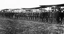 ![]() Members of the 166th Aero Squadron in front of a Dayton-Wright DH-4 | |