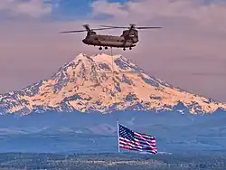 ![]() A CH-47 Chinook from 1-168th GSAB performing a "flag drag" | |