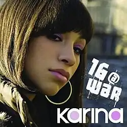 "16 @ War" is the debut single from Karina from her debut album First Love. It is produced by Tricky Stewart and The-Dream, and written by them.[1] It has spent 8 weeks on the Hot R&B/Hip-Hop Songs and peaked at #51. It debuted at #93. The song expresses hardships of life from a sixteen-year-old girl's point of view.
