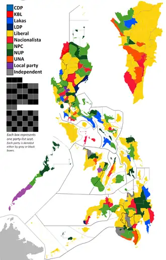 - ^ Mary Elizabeth Ty-Delgado won an electoral protest on January 26, 2016, replacing Philip Pichay. Ty-Delgado took office on May 23, 2016.