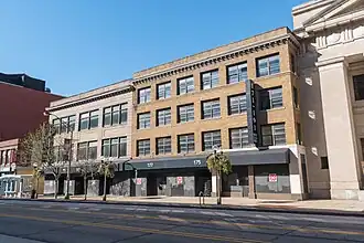 171–191 South High Street is a pair of historic buildings located between Walnut and Town Streets, west of High Street in Downtown Columbus. The structures stand across from the Columbus Commons park.[1] The buildings are eligible for listing in national, state, and local historic registers. The pair of early 20th century commercial structures are now rare in Downtown Columbus. While South High Street in the city's downtown district was once lined with innumerous early 20th century retail façades, the buildings at 171, 191, and 195 South High are the only remaining structures of this type. 195–201 South High has been significantly altered by the removal of its upper two stories, likely after a major fire in 1946.[2] While 171 South High is believed to be a 19th-century building, its façade dates to the early 20th century, adding to a street view that has remained largely unchanged for well over 100 years. The low-rise buildings fill their rectangular sites, abutting the sidewalk on High Street, originally with floor-to-ceiling windows to advertise goods for sale. These storefronts have been altered, likely numerous times, since their construction. Both buildings are of unreinforced masonry construction with wood-frame interior structures. Their exteriors are adorned with signs and awnings, not original to their designs.[3]