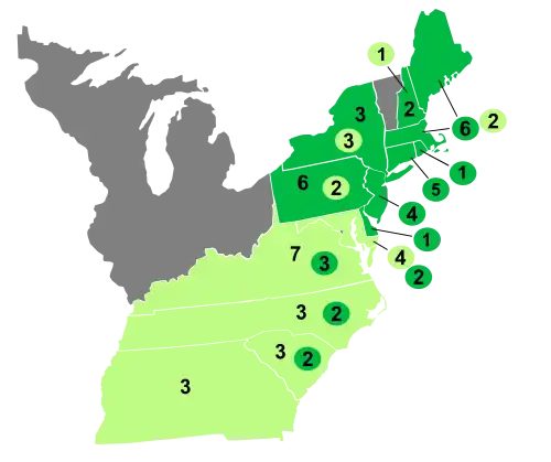 | Presidential election results map. Green denotes states won by Washington. Numbers indicate the number of electoral votes cast by each state.[note 1] | |