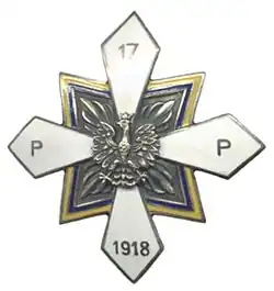 17th Infantry Regiment (Polish language: 17 Pulk Piechoty, 17 pp) was an infantry regiment of the Polish Army. It existed from late 1918 until September 1939. Garrisoned in Rzeszow, the unit belonged to the 24th Infantry Division from Jaroslaw.