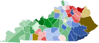 Adair: 30-40% 40–50% 50–60% 60–70% 70-80% 80-90% Logan: 30-40% 40–50% 50–60% 60–70% 70-80% 80–90% 90-100% Desha: 30–40% 40–50% 50–60% 60–70% 70–80% 80-90% Butler: 30-40% 40–50% 60-70% 80-90% | |||||||||||||||||||||||||||||||||||||