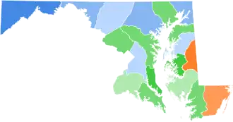 | Baltimore (City and County) | 5,840 | 59.47% | 3,980 | 40.53% | 0 | 0.00% | 0 | 0.00% | 1,860 | 18.94% | 9,820 |
