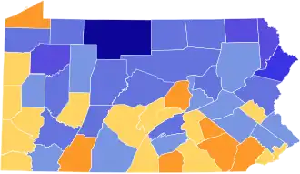 County Results Wolf: 50-60% 60-70% 70-80% 80-90% 90-100% Ritner: 50-60% 60-70% |