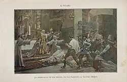 The massacre of friars in Madrid in 1834 was an anti-clerical riot that took place on July 17, 1834, in the capital of Spain during the regency of Maria Cristina and the first Carlist war (1833-1840) in which several convents in the center of Madrid were assaulted and 73 friars were killed and 11 were wounded, because of the rumor that spread through the city that the cholera epidemic that had been ravaging the city since the end of June and that had worsened on July 15 had occurred because "the water in the public fountains had been poisoned by the friars".[1] "The result of little more than twelve hours of violence" was a "party of blood and vengeance".[2] According to one author, "It was the first time that the Church had been subjected to the uncontrolled actions of its own believers. As contemporaries observed, these events demonstrated, above all, the loss of prestige of the religious in Catholic Spain, as was happening in other countries".[3]