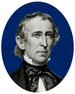Because Harrison (born in Virginia) was considered a Northerner (as a resident of Ohio), the Whigs needed to balance the ticket with a Southerner. They also sought a Clay supporter to help unite the party. After being turned down by several potential candidates, including John J. Crittenden, John Bell, and Willie Person Mangum, the convention finally found its Southerner who had faithfully supported Clay and would accept: former Senator John Tyler.[3] Tyler was well known to the delegates, having previously been the running mate of Hugh Lawson White and Willie Person Mangum during the four-way Whig campaign of 1836.[4] He was easily nominated on the first ballot.
