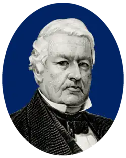 Whig Party leader Thurlow Weed hoped to secure the vice presidency for former New York governor William H. Seward, a vocal opponent of slavery, or to have him appointed U.S. Secretary of State.[7] New Yorkers opposed to Seward promoted Millard Fillmore, the New York State Comptroller, for vice president; under the conventions of the time, two top positions could not go to individuals from the same state.[8] Former congressman Solomon Foot of Vermont went to the convention as a supporter of Abbott Lawrence for vice president.[9] As a key Taylor supporter, Lawrence expected to be nominated for vice president.[10] Northern anti-slavery delegates perceived Lawrence as more accepting of slavery than Fillmore.[10] Recognizing that the Whigs would likely collapse if Lawrence was nominated and the northern anti-slavery delegates left the party, or if southern delegates left following a Seward nomination, Foot agreed to shift his support to Fillmore.[8][10] Lawrence's support eroded as other northern delegates followed Foot's lead, and on the first ballot, Fillmore had 115 votes and Lawrence 109.[8][10] (Seward was subsequently elected to the U.S. Senate for the term starting in March 1849.)[11]