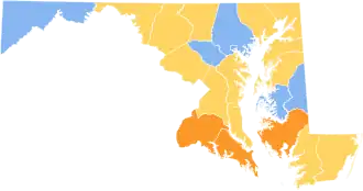 | Prince George's | 733 | 41.06% | 1051 | 58.88% | 1 | 0.06% | -318 | -17.82% | 1785 |