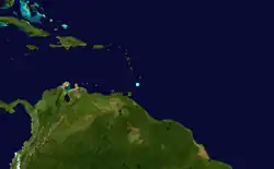 | Two | August 10 | Tropical storm | 45 (75) | Unknown | Barbados | Unknown | None | |||