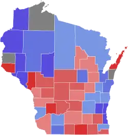There were no votes from Kewaunee County, La Crosse County, La Pointe County,[a] and St. Croix County. Dunn County would not vote for a Democrat again until 1970 and Waupaca County would not vote for a Democrat again until 1932.