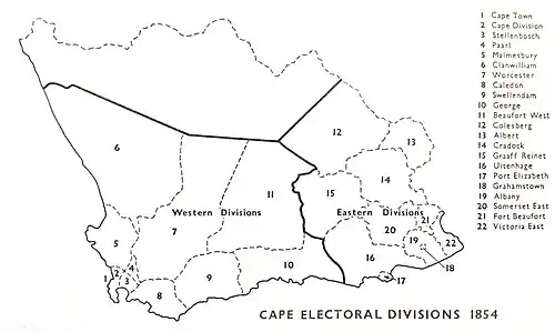 - ^ The Cape Parliament, 1854-1910 by J. L. McCracken, pg.33-34