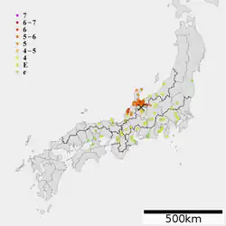| Epicenter | 36°24′N 137°12′E / 36.4°N 137.2°E[1] |