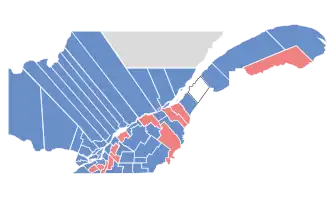 ![]() Map of the results by riding. | ||||||||||||||||||||||||||||