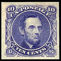 By early 1868, the existing definitive series of U.S. stamps had been used for more than six years and plates were no longer in pristine condition. Problematic as well was that these stamps had indelible associations with the Civil War, a calamity that was an unpopular association in America. The printer of these stamps, the National Banknote Company, was operating under a contract that expired in February 1869, which meant that the Post Office would soon have to solicit bids for a new four-year stamp-production contract. These circumstances made 1868 an ideal year for the Post Office to plan a new definitive stamp series: for bidders on the contract could be required to submit essays for new stamp designs along with their proposals. The Post Office advertisement for bids recommended a new imaginative method, even stating "that there should be variety in the sizes as well as the designs of the stamps".[7] While a variety of sizes was not ultimately produced, this stipulation may have been the germ of the decision to adopt a new size and new shape for the pictorials.