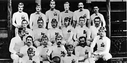 England: SHM Login (Royal Naval College), Alec Pearson (Blackheath), CR Gunner (Marlborough Nomads), AT Michell (Oxford University), CWH Clark (Liverpool), WE Collins (St George's Hospital), J V Brewer (Gipsies), CC Bryden (Clapham Rovers), Andrew Bulteel (Manchester), James Bush (Clifton), HJ Graham (Wimbledon Hornets), JDG Graham (Wimbledon Hornets), W Greg (Manchester), WHH Hutchinson (Hull), Edward Kewley (Liverpool), Francis Luscombe (Gipsies) capt., EE Marriott (Manchester), Murray Marshall (Blackheath), Edward Beadon Turner (St George's Hospital), CL Verelst (Liverpool)