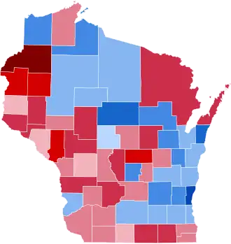 | Waukesha | 3,129 | 48.27% | 3,335 | 51.45% | 17 | 0.26% | 1[o] | 0.02% | -206 | -3.18% | 6,482 |
